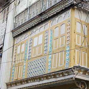 | 1937 AD built 4 storeyed house with stucco work in Fakhri Mohalla |