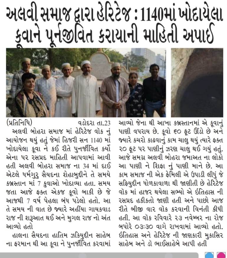 23rd Nov 2025 AD/3 Jumaadi ul Ukhraa 1447 AH, Sunday, 3:30 pm, a heritage walk was organized in the Alavi Bohra community's heritage cemetery-qabarastaan, in which interesting information was given on how the well dug in the 1155 AH/1742 AD, was revived.