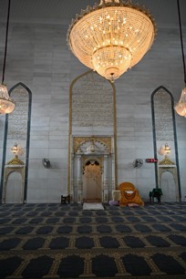 - The use of false-ceiling is done diligently and extensively with different designs in each floors. To add to the spiritual ambiance and peaceful ambit the entire ceiling is white in colour and the same is treated with blissful designs on the outer wall of the corridor overlooking the main hall of the mosque.