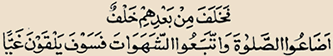 “Fa khalafa min ba’dehim khalfun azaa’us salaata wat taba’ush shahawaata fa sawfa yalqauna ghayya.”