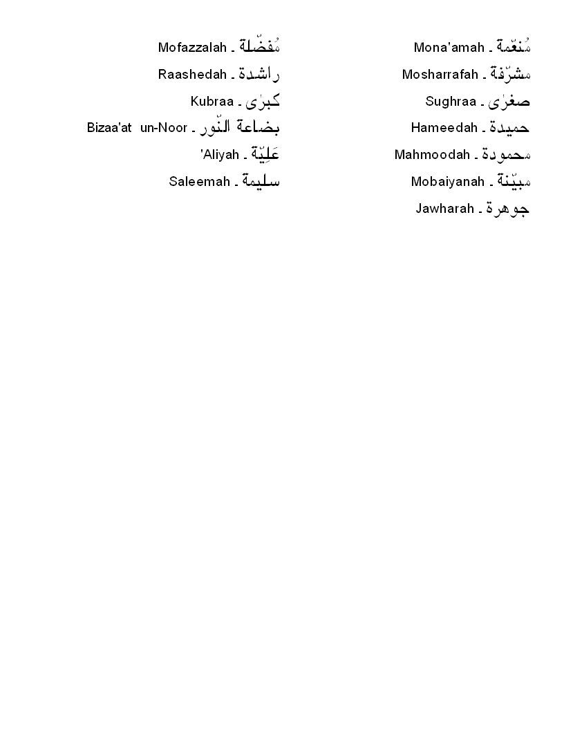 Example 1: Your name is Mohammad which has four alphabets; meem (40), haa (8), meem (40), daal (4). After adding up the values of these alphabets, you get the figure of ‘92'. Now you have to look up in the list of names of Allaah and find out whether any name has this value of ‘92'. If there is no single name matching with the figure ‘92' then you have to take any two or three names of Allaah to get ‘92'. Here, there is no single name which has the value of ‘92'. So you take two names; Hakeem (78) and Wahhaab (14). The value of these names added together is 92. You have to do the tasbeeh of these two names Yaa Hakeemo and Yaa Wahhaabo.