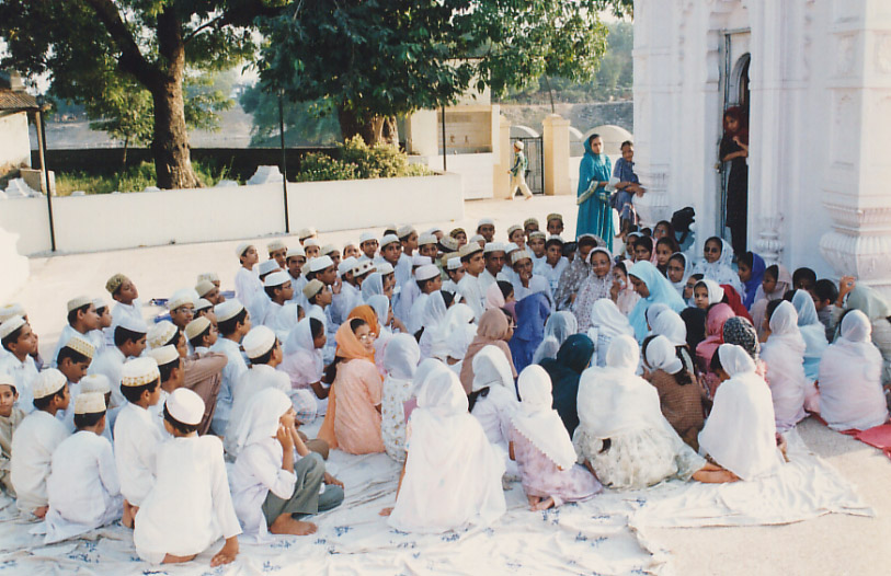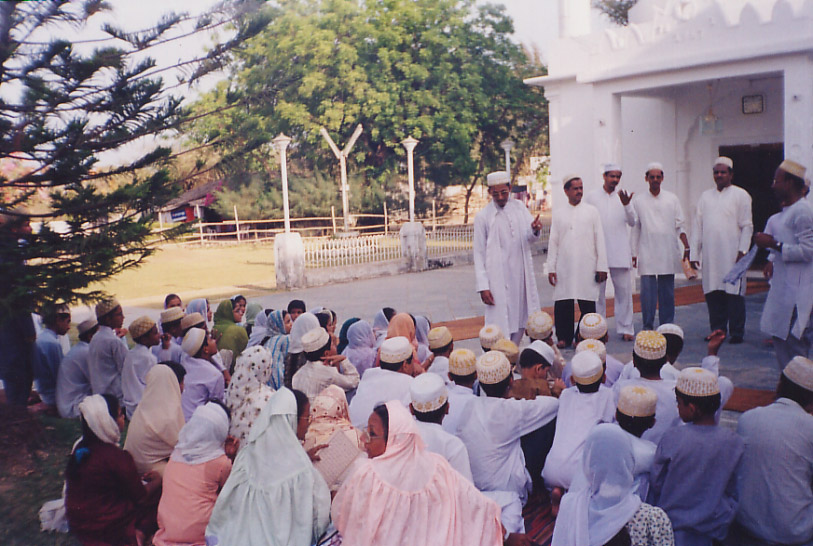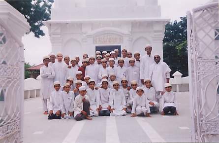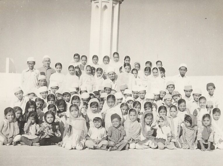 2) Madrasah na bachchaawo na group ni aa ghani juni tasweer che. Masjid-e-Noorani nu terrace nazar aawe che. Tasweer ma jamni jaanib Miyasaheb Nazarali ubhela che. |