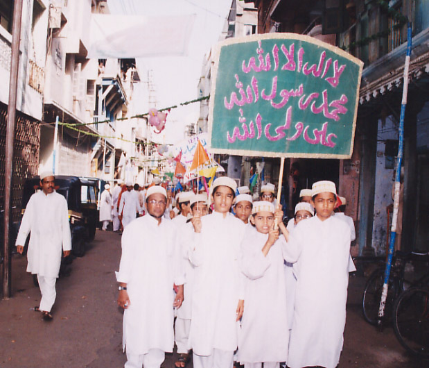 7) Huzoor-e-‘Aali (TUS) na milaad mubarak na mauqa par madrasah na students shaandaar juloos Badri Mohalla ma nikaale che. Te juloos ni ek tasweer. |