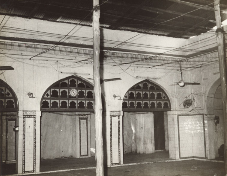 Saiyedna Yusuf Nuruddin Saheb na zamaan ma aa masjid shaheed thai te waqat Huzoor-e-'Aali (TUS) Mazoon-e-Mutlaq na mansab par hata. Navi masjid ni ta'meer nu dekh-rekh nu kaam Aapna haath ma hatu. Tasweer ma Aap contactor ne ishaaro kari samjhaawi rahya che. Masjid na tamaam pillars na tiles par Arabi ma lakheli taqteeoo hati jene Mumbai ni Worli ni masjid ma lagaawwaama aawi che. Tasweer ma pillar par taqtee nazar aawe che. |