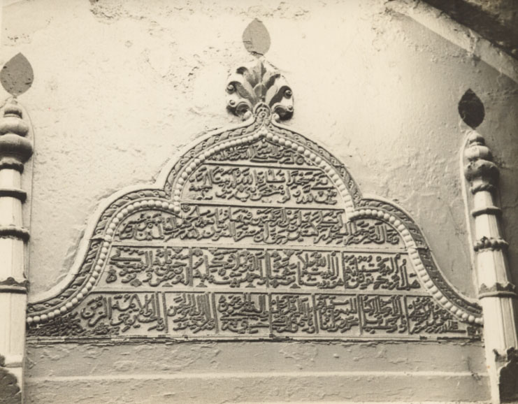 Aa masjid na chawk ni mehraabo che jeni upar ni paali par Saiyedna Fakhruddin Saheb ye Arabi ma "Khair ul-Anaam" ni bait tehreer farmaawi hati. Mehraab ne paachal je 2 pillars nazar aawe che te masjid na che ane te par parda latkaawela che. Aa parda ne paachal qiblo che. |