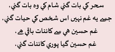 Ghamm e Husain gaya puri Kaayenaat gayi. |