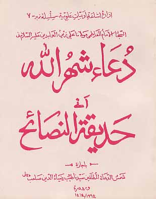 Hadeeqat un-Nasaa’eh - Aa kitaab ma Imam Zainul Abedin (AS) ni Maulana Ali (AS) na shi’aa ni zindagi ne sawaarwa waste du’a saathe pand ane naseehat na kalemaat chhe. |