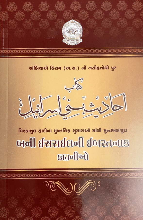 By the graceful Razaa of Saiyedna Dr Haatim Zakiyuddin saheb TUS, the book named "Ahaadees e Bani Isra'eel" has got published in Shahrullaah il Mo'azzam 1445. It contains 55 stories of the Ambiyaa-prophets or pious people of Bani Isra'eel i.e. the clans of Ya'qoob Nabi. Each one of them carries 'ibrat-advice and nasihat-admonition for all ages. Younger ones and seniors of the family will find it equally interesting. These stories of Bani Isra'eel got published in the Deeni Newsletter Mishkaat ul Haadi starting from 1433 till 1443 AH.