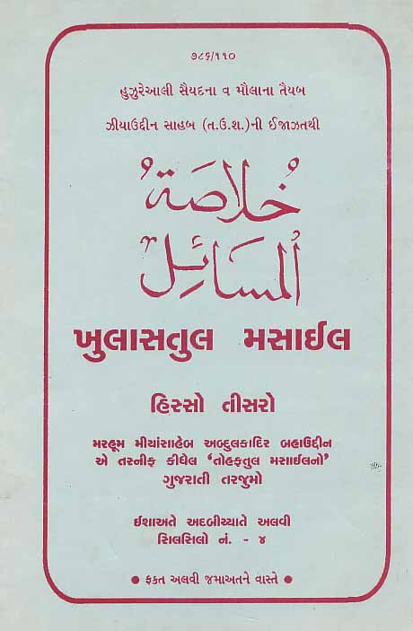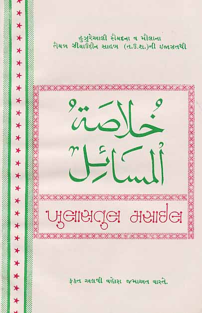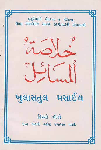 Khulaasat ul-Masaa’il – Part-I - Aa kitaab ma deeni-fiqhi-taareekhi-rasmi ane Isma’ili-Taiyebi aqaa’id ne lagta tafseel war sawaal ane jawaab chhe. |