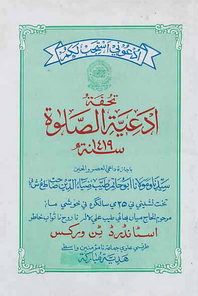 Barakaat Ad’eyat is-Salaat - Aa kitaab ma dawat ni majliso ma Saiyedna Fakhruddin Saheb (QR) ni tasneef farmaaweli chand baito no majmu’o chhe, chand mujarrab tasbeeho ane namaaz ne ba’ad padhaati du’aao chhe. |