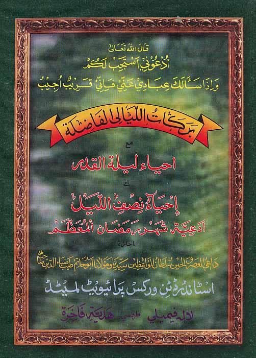 Barakaat ul-Layaalil Faazela - Aa kitaab ma Ramzaan-ul-mo’azzam ma padhati tamaam du’aao no majmu’o, 30 roza ni niyyato, Nisf il-Lail ni namaaz, Lailat ul-Qadar ni namaaz nu bayaan chhe. |