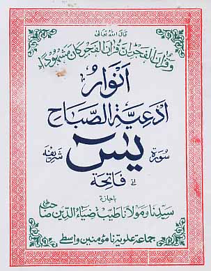 Anwaar Ad’iyyat is-Sabaah - Aa kitaab ma surah-e-Yaseen, fajar ni namaaz ma padhwaani du’aao ane mu’mineen na fateha ni du’aa chhe. |