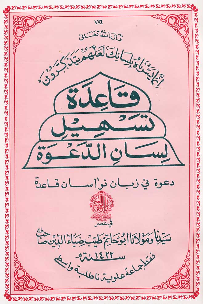 Qaa’edah Tasheel-e-Lisaan id-Da’wat - Madrasa-e-Taiyebiyyah na nisaab ma aa qaa’eda raa’ij che. Aa zabaan dawat ni ane mumineen ni gharelu zabaan che, je har jama’at na fard ni seekhwi laazim che. |