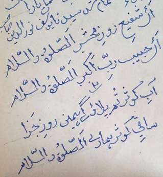 | 43rd Da’i ullaahil Ameen Saiyedna Yusuf Nooruddin saheb (aq) wrote this bayt mubaarak Aye Shafi'-e-Roz-e-Mehshar As-Salaato was Salaam, in one of his hafti on 15 Rabi’ ul-Aakhar 1388 AH on Devdi Mubaarak. During his Da’wat period, this bayt was frequently recited in Majlis-o-Mehfil and it is the tradition of Da’wat-e-Shareefah to begin the majlis of this type of abyaat in which there is fazaa’il, manaaqib and sift-o-sanaa of Ahl ul-bayt (as). As no majlis is complete without this. |
