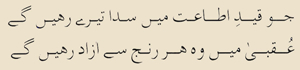 Uqbaa mein wo har ranj se azaad rahenge. |