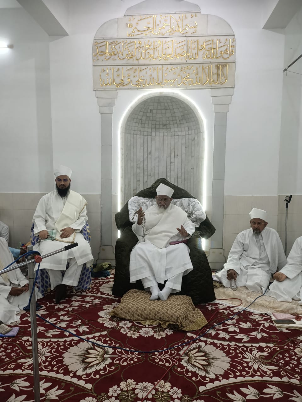 Mukaasir Maulaa Saiyedi Mohammad Nooruddin saheb (dm) presided the 258th ‘Urs Mubaarak of Saiyedna Nooruddin saheb (aq), Surat on 19-20 Moharram ul-Haraam. Like every year mumineen attended the ‘Urs with ikhlaas and ‘aqeedat-mandi and offered Chadar-Ghilaaf on the Qabr-e-Anwar of Muqaddas Maulaa on the hands of Mukaasir Maulaa. Hudood recited the bayt “Che Du’aato no Fazal Mashhoor kul Insaan ma” in the shaan of Maulaa in the Rawzah Mubaarakah. On the day of ‘Urs at 9:00 am, in the presence of Mukaasir Maulaa many mumineen took minnat-nazr for various haajaat and did du’aa taking the waseelah of Muqaddas Maulaa. Arrangement of Salawaat jaman was done by different Sakhi mumineen under the management of Hizb ul-Imaan Masjid Sabeel Committee and Sherbat of different flavours was served by Anjuman-e-Nooraani, Mumbai.