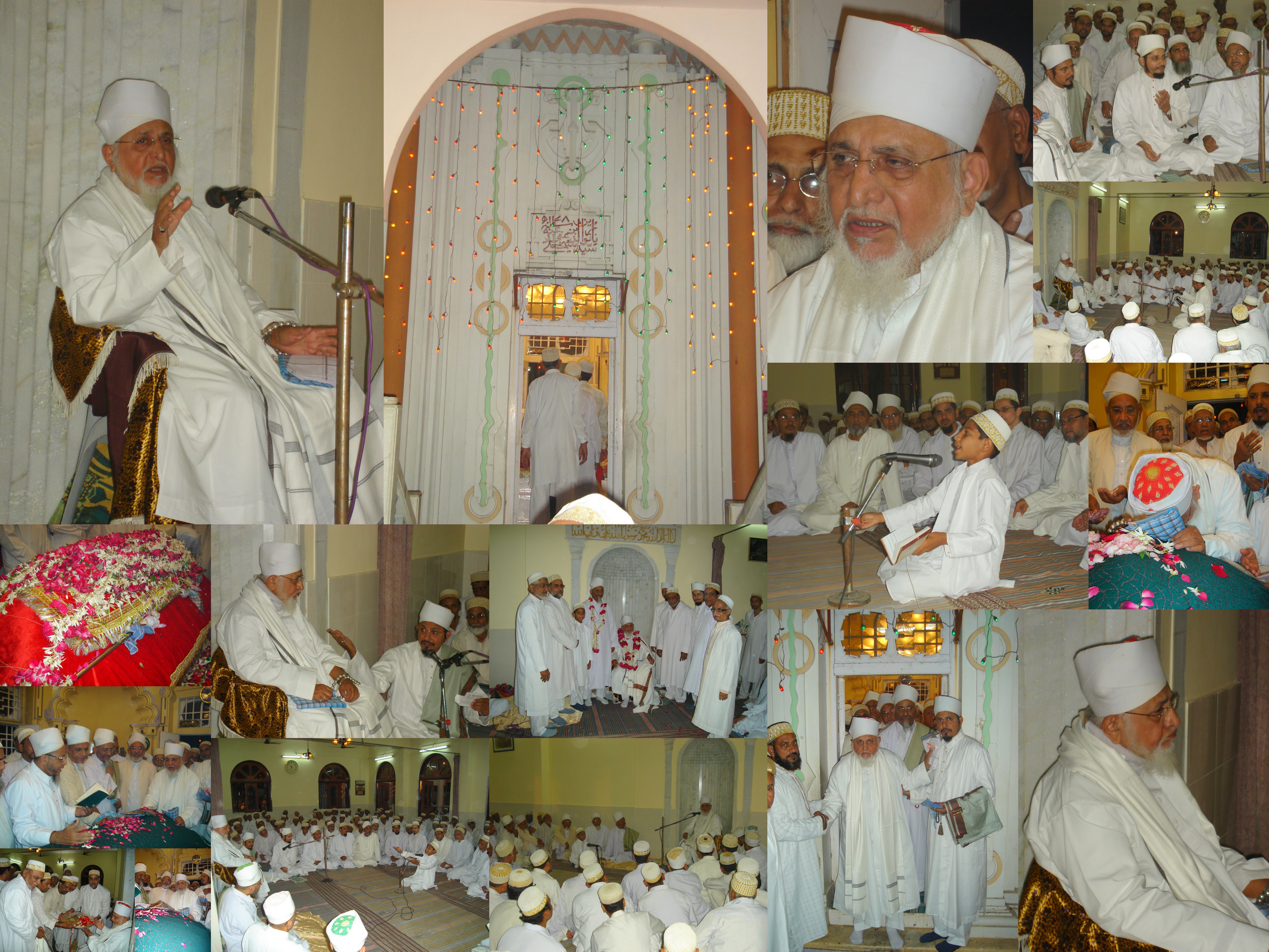 Large number of mumineen assembled during this miqaat and remembered Maulaa's hayaat e taiyebah, his 'ilmi khidmaat and community upbringing. Anjuman e Fayz e Alavi made various sherbats in the khidmat of Zaa'ereen. Mulla sahebs of Mumbai Jamaa'at took Razaa for the ta'meer of Maulaa's Rawzah Mubaarakah. Mukaasir Maulaa DM composed qaseedah muneerah, "Jab Aqeedat jawaan hoti hai, Har Ziyaarat ki Jaan hoti hai, Chumta hu Tumhaari Turbat ko, woh Zameen Aasmaan hoti hai." On the day of Urs Mubaarak Maulaa remained present in Rawzah Nooraaniyah at 10 am when mumineen took nazr-o-minnat of their various zaahiri-baatini haajaat. Maulaa explained them the importance of wasilah and the Mushkil-kushaai of Muqaddas Maulaa. All those present did tawaaf-e-tashakkur of the Qabr-e-Anwar and recited Surah Yaa-Seen. |