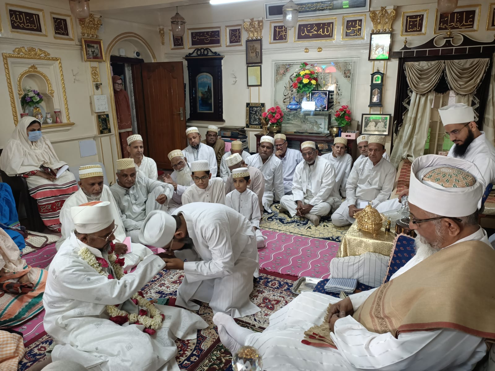 Mulla Ibrahimbhai Ameeruddin Maulvi was granted Razaa to guide mumineen in Ziyaarat, Recitation of Du’aas and doing Imaamat in Farz Namaaz. Since years he is in the khidmat of Da’wat e Shareefah and he is well versed in the Qir’aat of Mukhtalif Ad’eyah.
